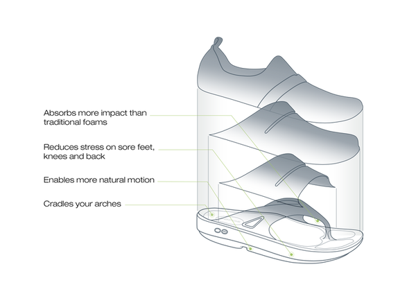 An evolution of the OOriginal, featuring an agile OOfoam™ strap for additional support and comfort. Revolutionary OOfoam™ technology absorbs 37% more impact than traditional footwear foam materials to reduce the stress on your feet and joints.
