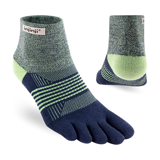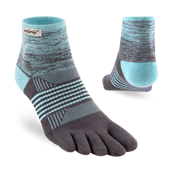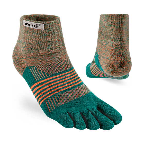 Engineered and cushioned for women who run far and hike fast on shifting, uneven trails, this midweight toesock delivers comfort and protection with agility and support. Snug, but not binding, the double-cuffed mini-crew height seals out dirt, sand, and debris. COOLMAX® EcoMade wicks away moisture, nylon adds durability, and the narrower profile with increased stretch is specifically designed to fit women’s feet and toes. Arch support is built in, mesh at the top improves breathability, and our unique design wraps fabric around each toe to minimize blisters, allow a natural splay, and more effectively wick moisture.
