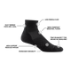Take on everything from single track training to jeep road crushers in the smooth and ultra-lightweight fit of our redesigned ¼ running sock. Its added ankle coverage sports silky next-to-skin ribbing, with breathable flex zones in the forefoot and fatigue-zapping arch support. Runners enjoy Merino Wool's ability to dry quickly and move excess heat and moisture away from feet.