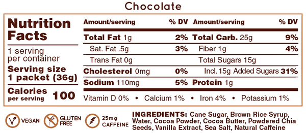 Fruit Puree. Chia Seeds. Brown Rice Syrup. You don't need a PhD to pronounce the ingredients in Hüma Gel.