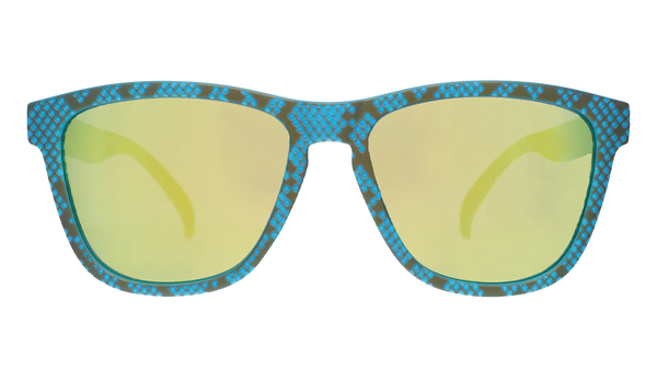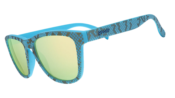 Get down with danger noodles. Come Slither, Baby. It's time to shed your inhibitions and get snake-ed with these limited-edition sizzlin' blue textured ssssnake-print OG ssssunnies with gold reflective lenses. Grab yours before they sssslither away.