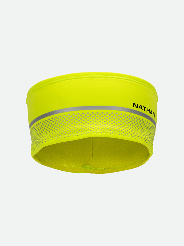 Don't let flyaway hairs disturb your focus. With this midweight fleece headband with high visibility reflective graphics, you will make a statement day or night. The easy soft polyester and spandex techno knit fabric will keep your hair in place so you can keep pace.