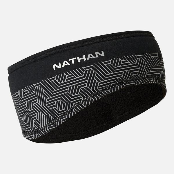 Lightweight fleece headband provides warmth and boosts safety with a bold reflective print.
