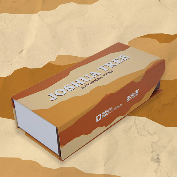 The great beauty of America’s national parks...is now available...FOR YOUR FACE! Nine stunning sunglasses! All inspired by a different national park! Good for hiking, kayaking, climbing, and...stuffing s’mores into your face after sipping...whatever beverage you put into your canteen.