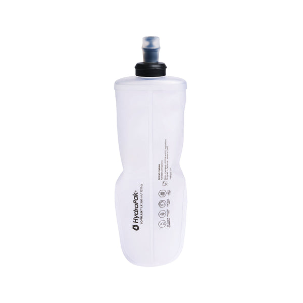 With our new 360ml soft flask – Made by HydraPak – you get even more world class performance out of your hydration system. Designed to maximize the ergonomics in our running vests, the low profile flask with 28mm cap and high flow bite valve shrinks as you consume your liquids reducing it’s mass and volume. Weighing a scant 30g. it is the perfect companion for all ultralight Naked products.