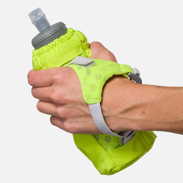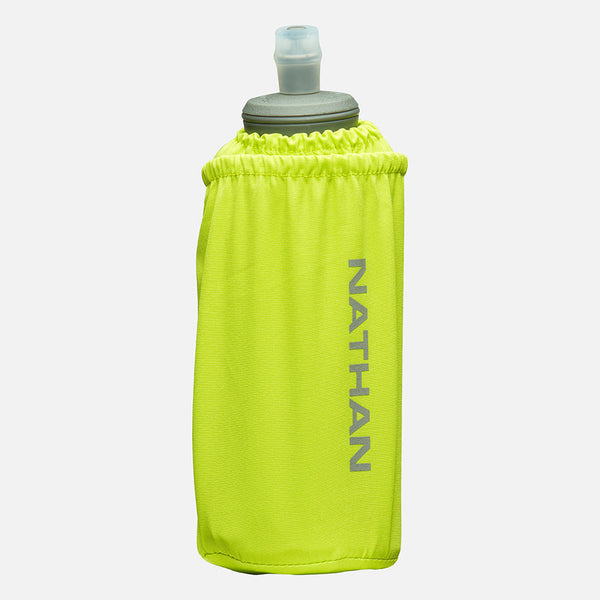 The Pinnacle Soft Flask Insulated 18oz Handheld features Nathan's advanced Exo-Draw soft flask technology in an updated carrier and grip-free strap for unmatched comfort. It boasts an expandable pocket for keys and essentials, ideal for marathons, trail runs, hikes, climbs, and more. With an insulated flask, keep fluids cooler, longer.