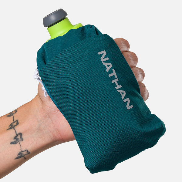 The second-gen SpeedDraw™ 12oz Flask features an updated ergonomic, no-slip grip and easy-squeeze design. The updates include a power mesh pocket that fits most smartphones and a zippered pocket for valuables.