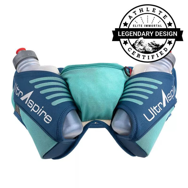 The Speedgoat 3.0 is Karl Meltzer’s signature long distance waist pack. The Speedgoat 3.0 is designed for stability and easy access. This pack helps to keep the weight near your center of gravity allowing you to handle technical trails and conserve energy during longer endeavors. This pack comes with 2 UltraFlask 550 Hybrid Bottles. The bottles are simple, intuitive, and the holsters provide easy access on the go. The newly designed holsters are constructed to sit nicely on the back of the hips out of the way of the arm swing but close enough to access them when you need them quickly. Both holsters are insulated to keep fluids cooler for longer. The holsters are designed with a mechanical locking system to prevent launching but still allow easy access. The bottle sits securely in the belt with the weight close to the body proving the most stable 2-bottle pack on the market. In addition to hydration holsters, this pack is equipped with a 4-way stretch mesh zippered pocket to hold items you may need for later. For items you need more frequently, each holster also has a quick stash pocket for rapid access. The front of this waist pack is also equipped with a functional 4-way stretch mesh pocket capable of carrying a large cell phone and Z-pole attachments to quickly access or stow trekking poles on the go.