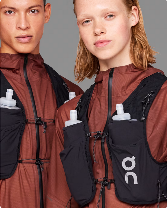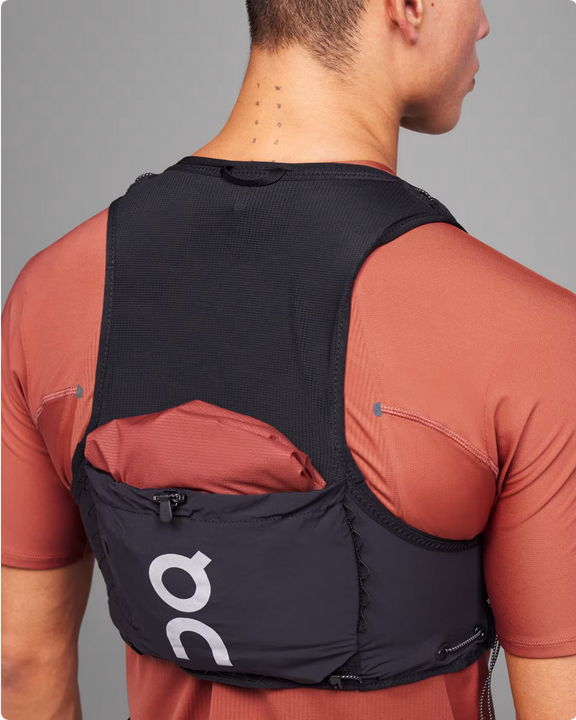 Tailored pockets for two 500 ml Hydrapak® flasks plus space on the back to hold a hydration bladder