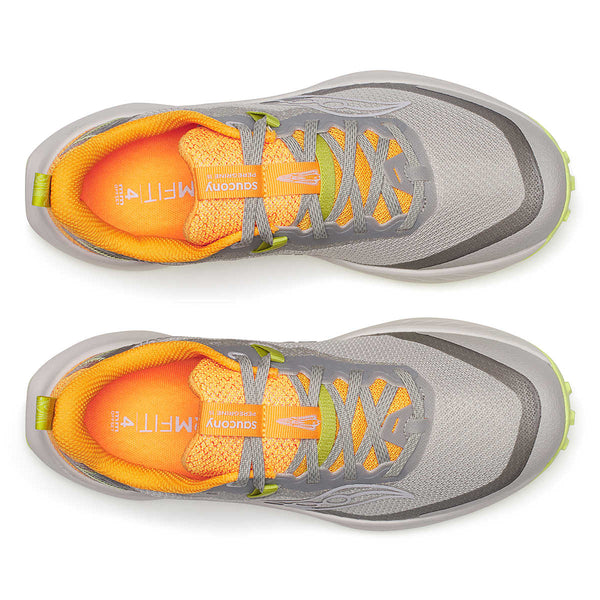Tackle tough terrains with aggressive 5 mm lugs and PWRRUN cushioning. The women's Saucony Peregrine 15 trail-running shoes offer protection from dirt and debris in a lightweight, low-profile package.