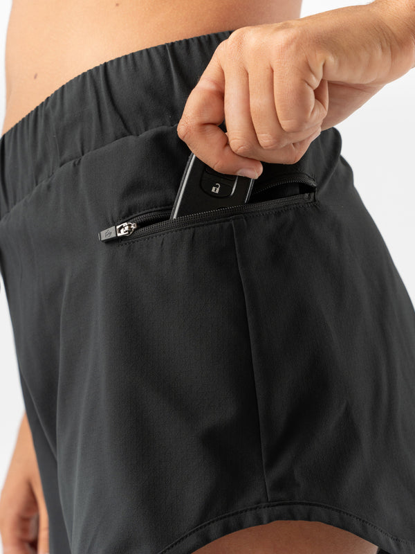 Inspired by board shorts but ready to run. Taking over for the Surf n’ Turf, these semi-relaxed shorts sport a mid-rise waist and two zip pockets that fit most phones. Even radder, they’re made from 100% recycled poly rated UPF 30+. Built for sun—and even the surf.