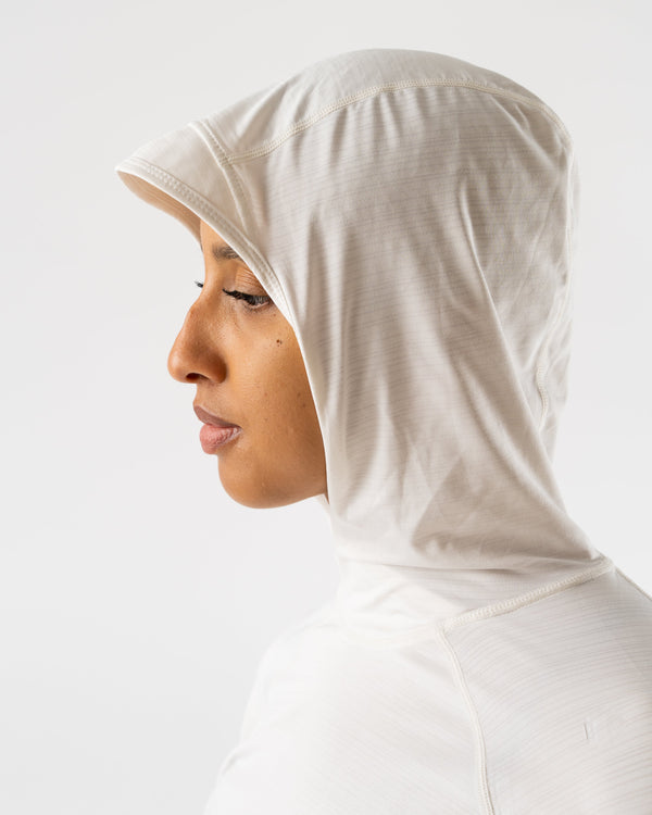Sun safety feels better than ever. Now with a UPF 50 rating, the 2.0 updates to lightweight jersey with laser cut perfs under the arms for impressive ventilation. Sensitive skin enjoys greater protection: a new built-in brim shades the face and slanted cuffs cover the tops of the hands. The scuba-style hood hides the neck and ears from sight as well. One last surprise: a zippered pocket to stash keys and cards.